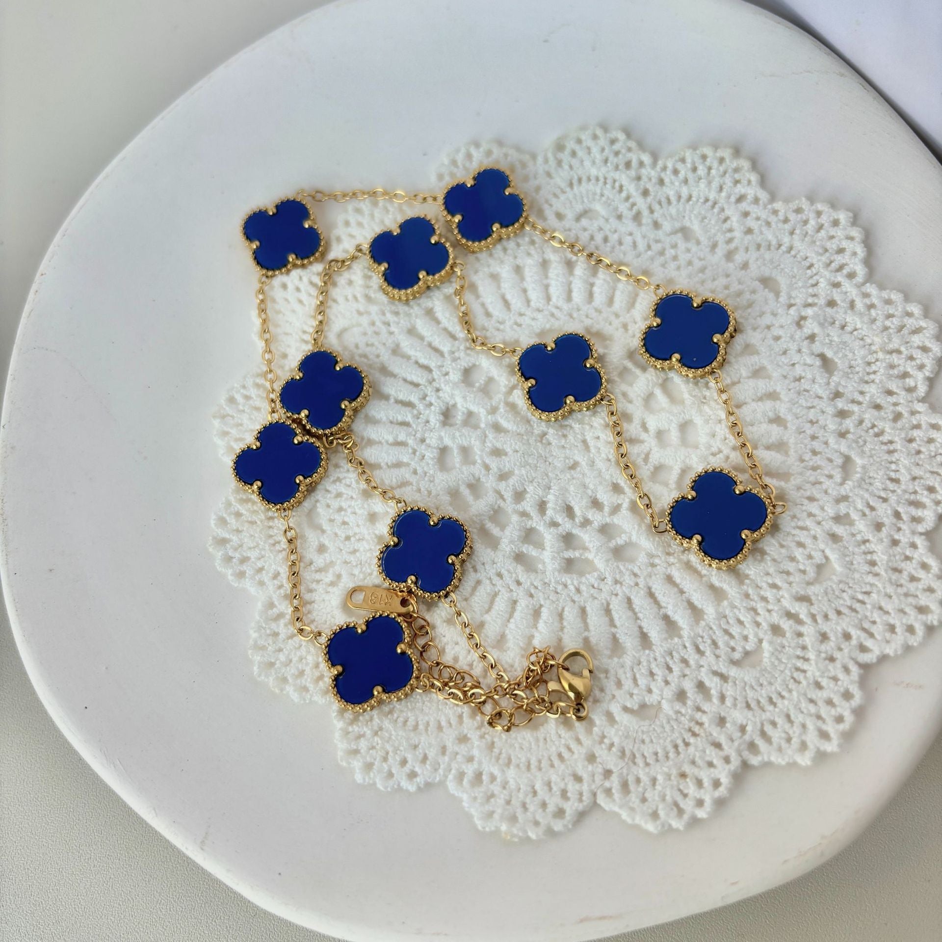 EMKOSUNG 18K Gold Plated Unique 10 Flowers Four Leaf Clover Silver Necklaces for Women , Fashion Necklaces with Exquisite Jewelry Box ( Blue) Learn More..