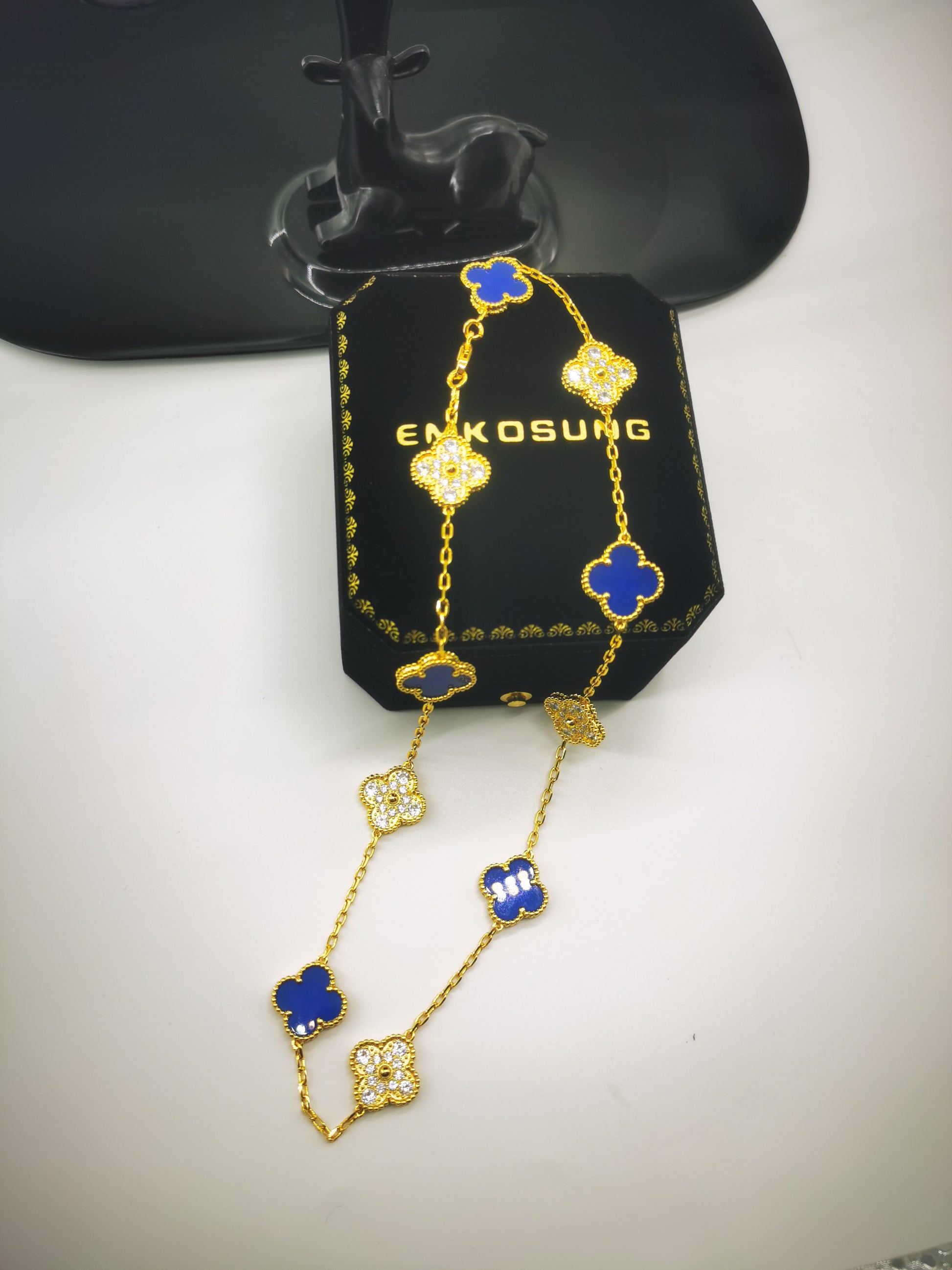 EMKOSUNG 18K Gold Plated Unique 10 Flowers Four Leaf Clover Silver Necklaces for Women , Fashion Necklaces with Exquisite Jewelry Box ( Blue+Diamond) Learn More..