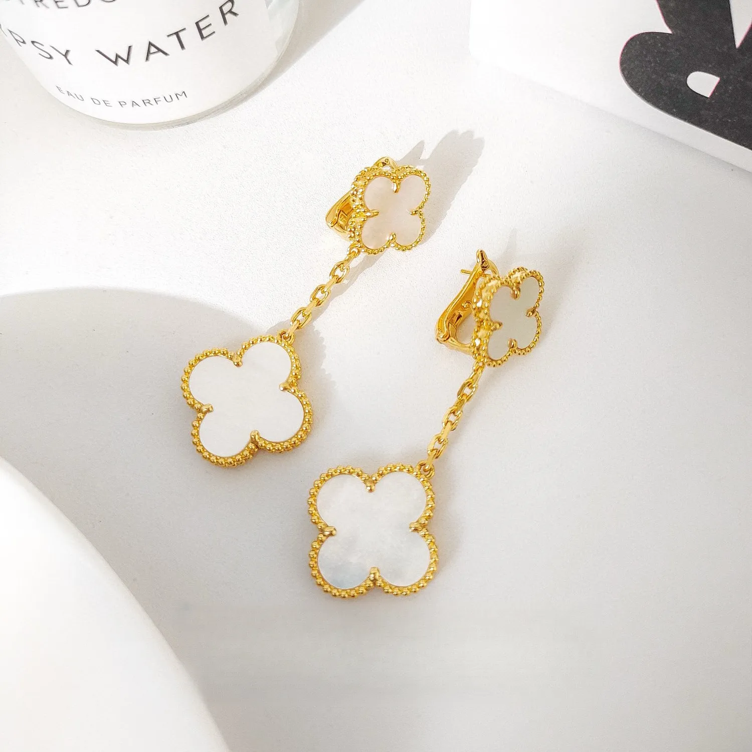 EMKOSUNG 18K Gold Plated Unique 2 Flower Four Leaf Clover Silver Earrings for Women , Fashion Earrings with Exquisite Jewelry Box ( White) Learn More..