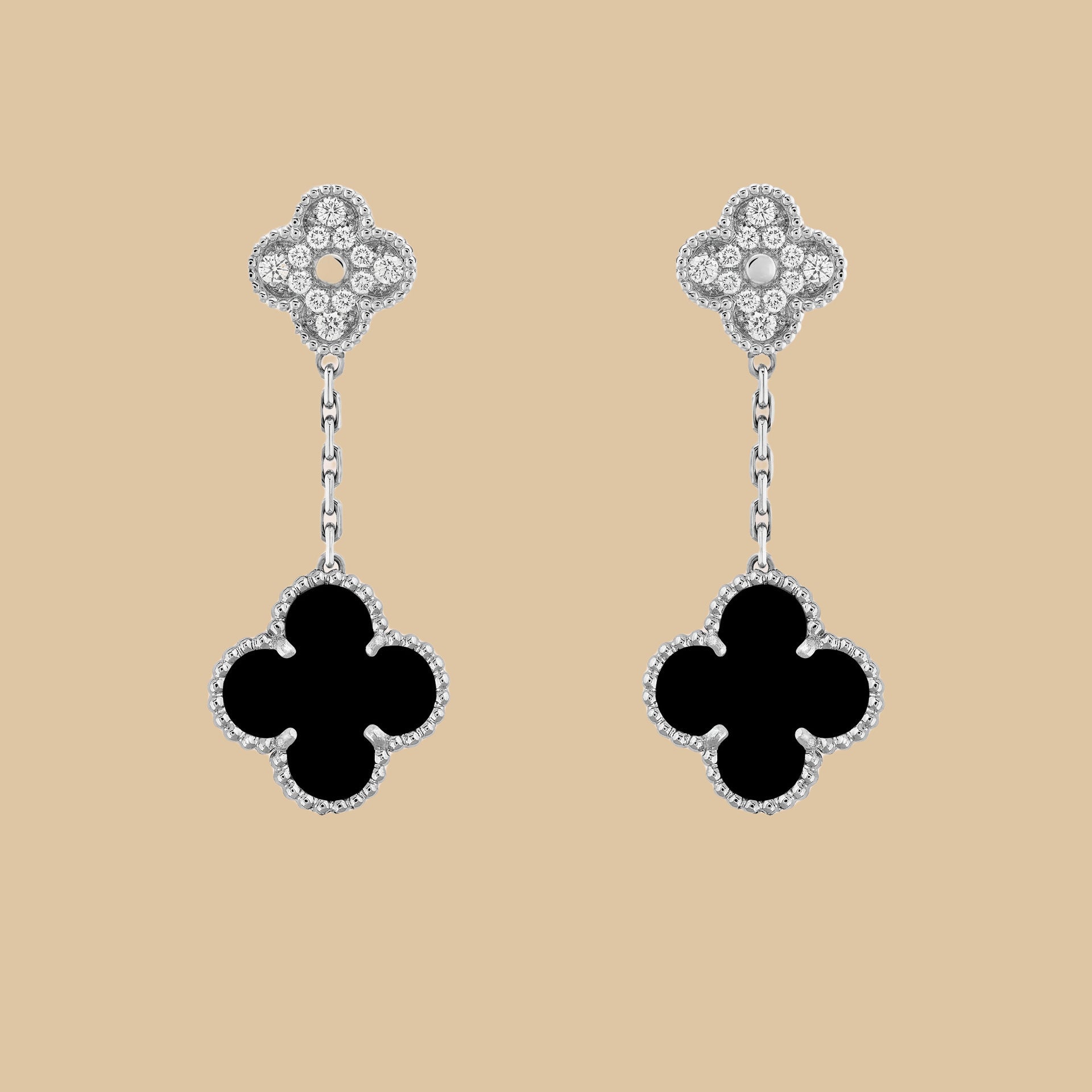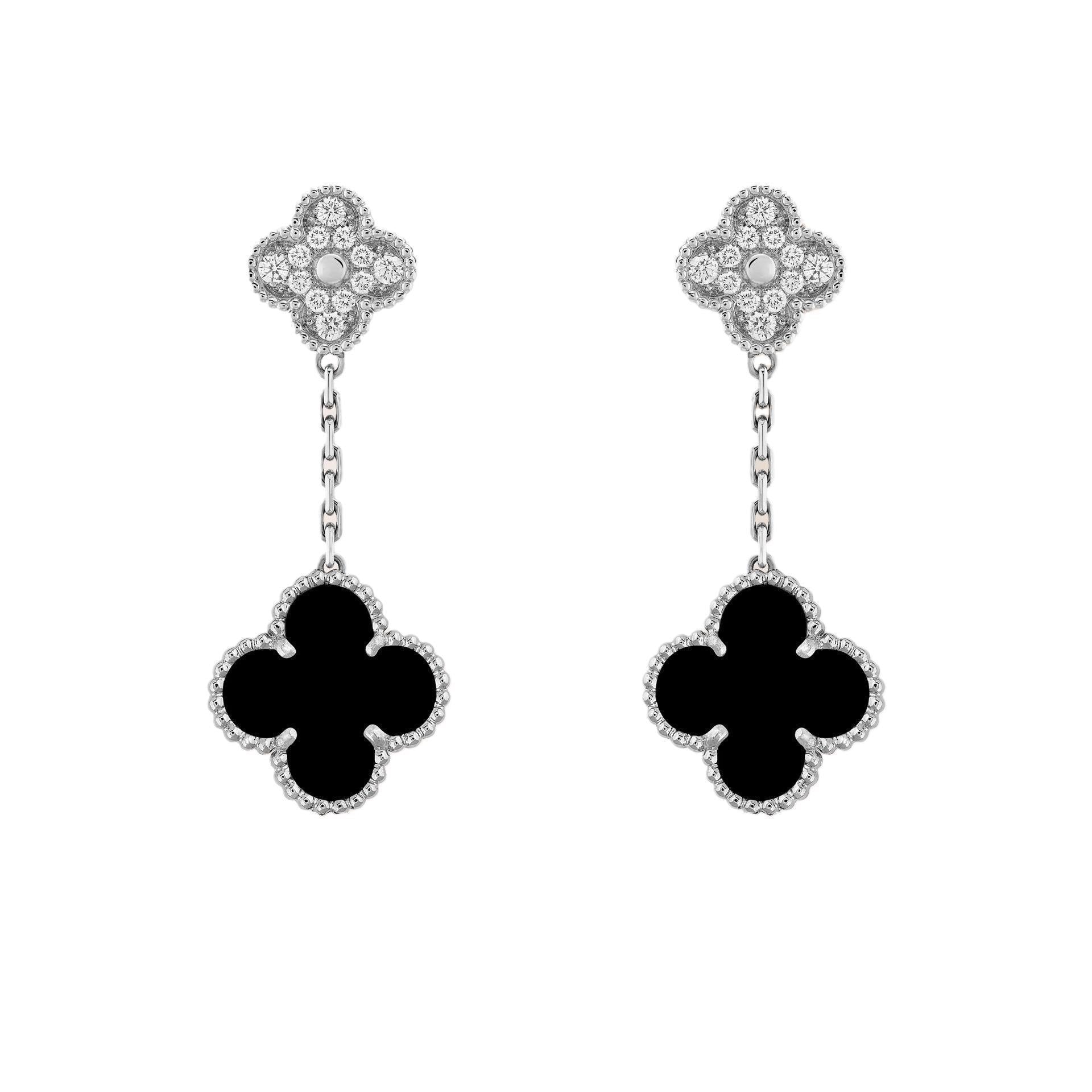 EMKOSUNG 18K Gold Plated Unique 2 Flower Four Leaf Clover Silver Earrings for Women , Fashion Earrings with Exquisite Jewelry Box ( Black+ Diamond) Learn More..