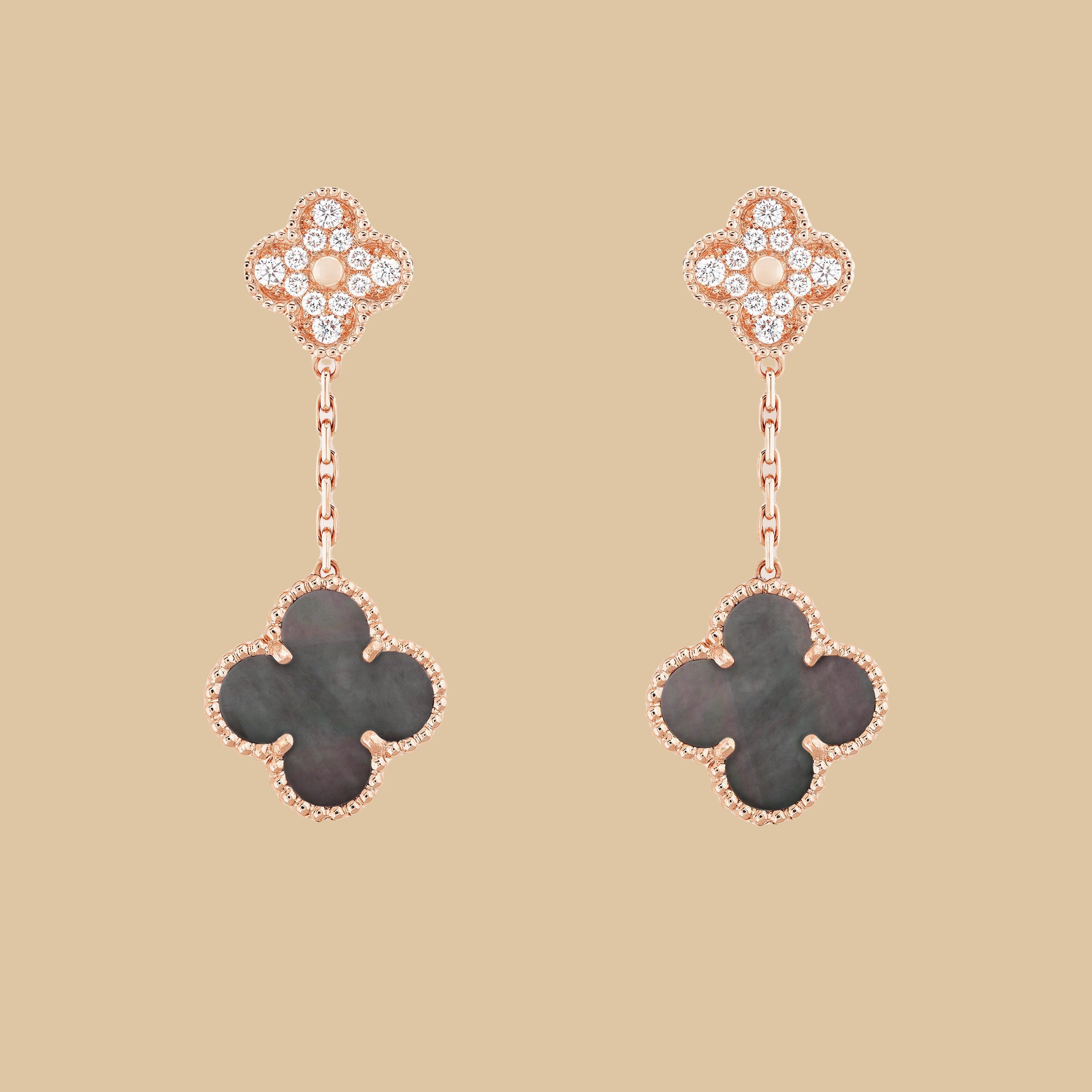 EMKOSUNG 18K Gold Plated Unique 2 Flower Four Leaf Clover Silver Earrings for Women , Fashion Earrings with Exquisite Jewelry Box ( Grey+ Diamond) Learn More..