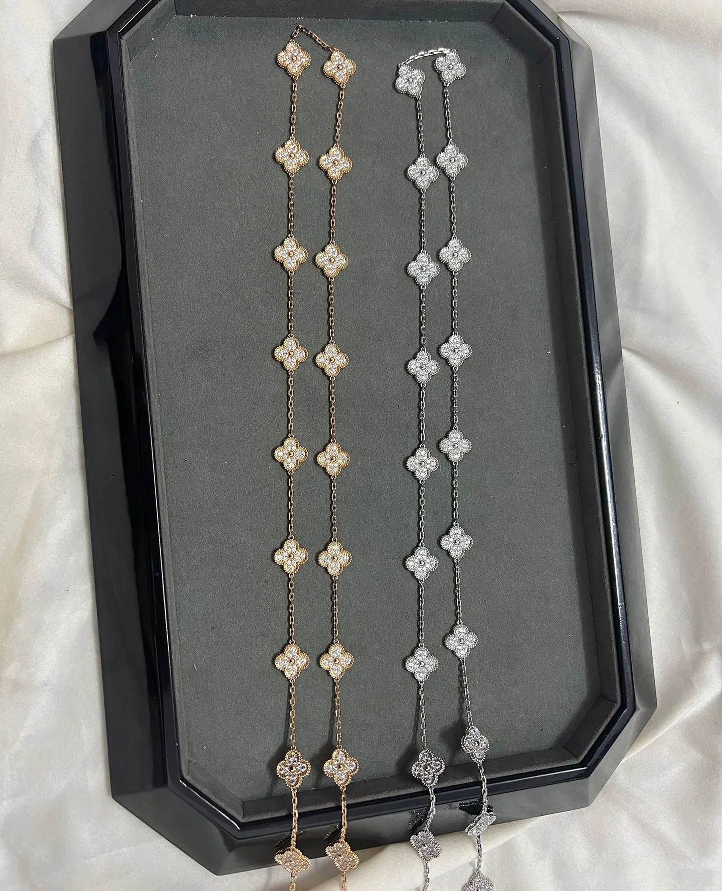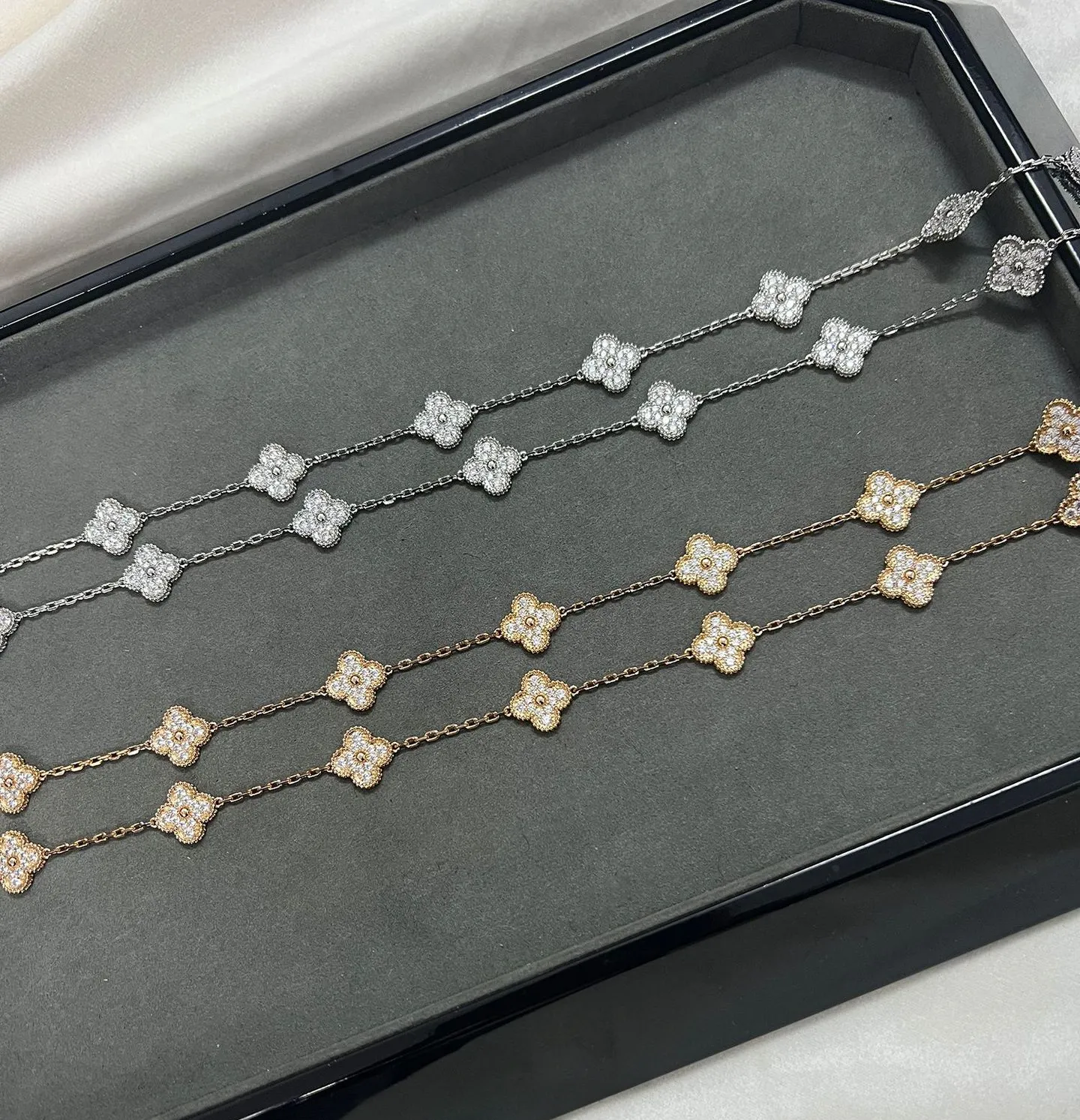 EMKOSUNG 18K Gold Plated Unique 20 Flowers Four Leaf Clover Silver Necklaces for Women , Fashion Necklaces with Exquisite Jewelry Box (Silver Full Diamond) Learn More..