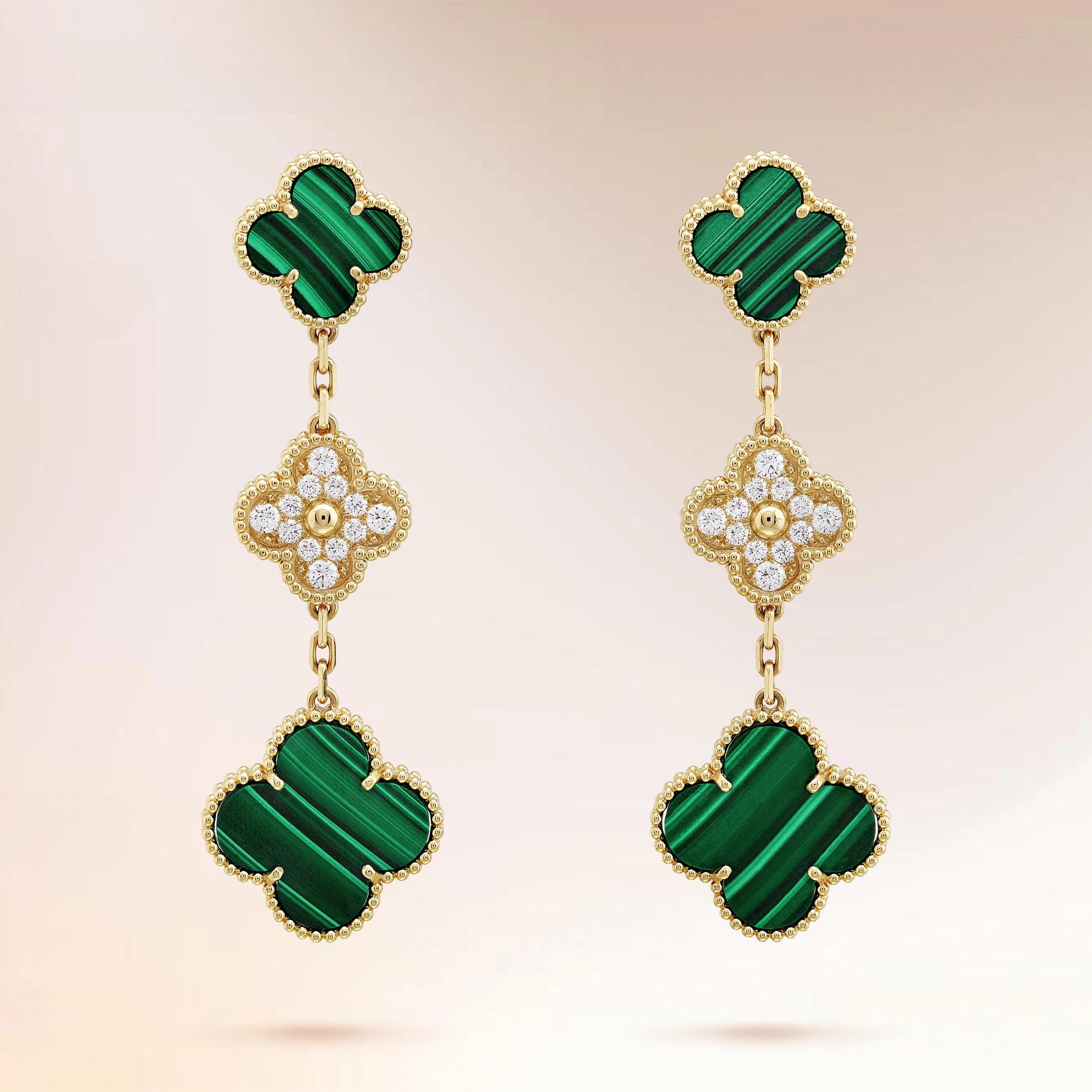 EMKOSUNG 18K Gold Plated Unique 3 Flower Four Leaf Clover Silver Earrings for Women , Fashion Earrings with Exquisite Jewelry Box ( Green+Diamond) Learn More..
