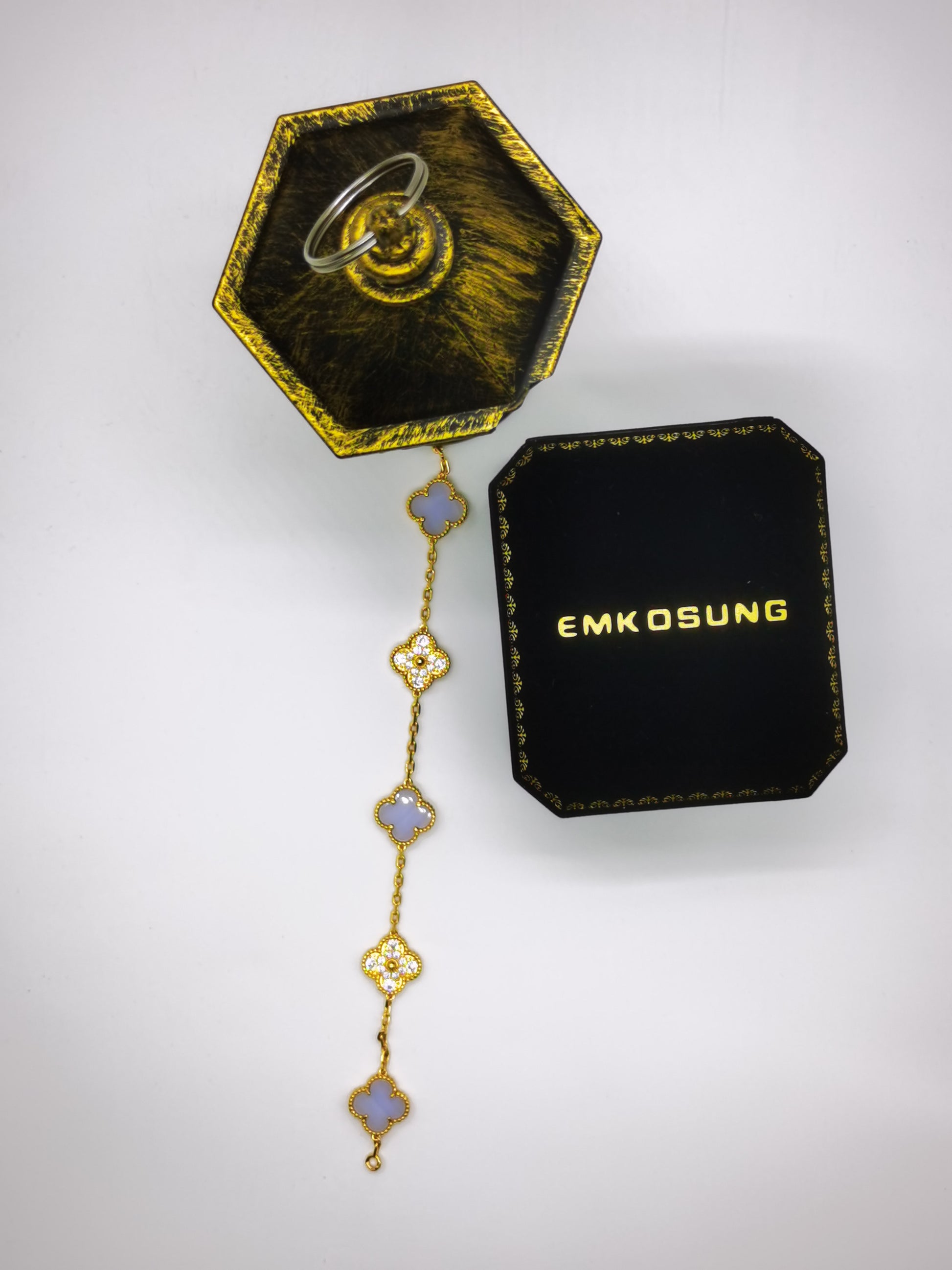 EMKOSUNG 18K Gold Plated Unique Four Leaf Clover Silver Bracelets for Women , Fashion Bracelets Gifts for Women with Exquisite Jewelry Box ( Purple-Gold Chain) Learn More..