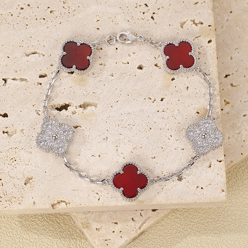 EMKOSUNG 18K Gold Plated Unique Four Leaf Clover Silver Bracelets for Women , Fashion Bracelets Gifts for Women with Exquisite Jewelry Box ( Red+Diamond—Silver Chain) Learn More..