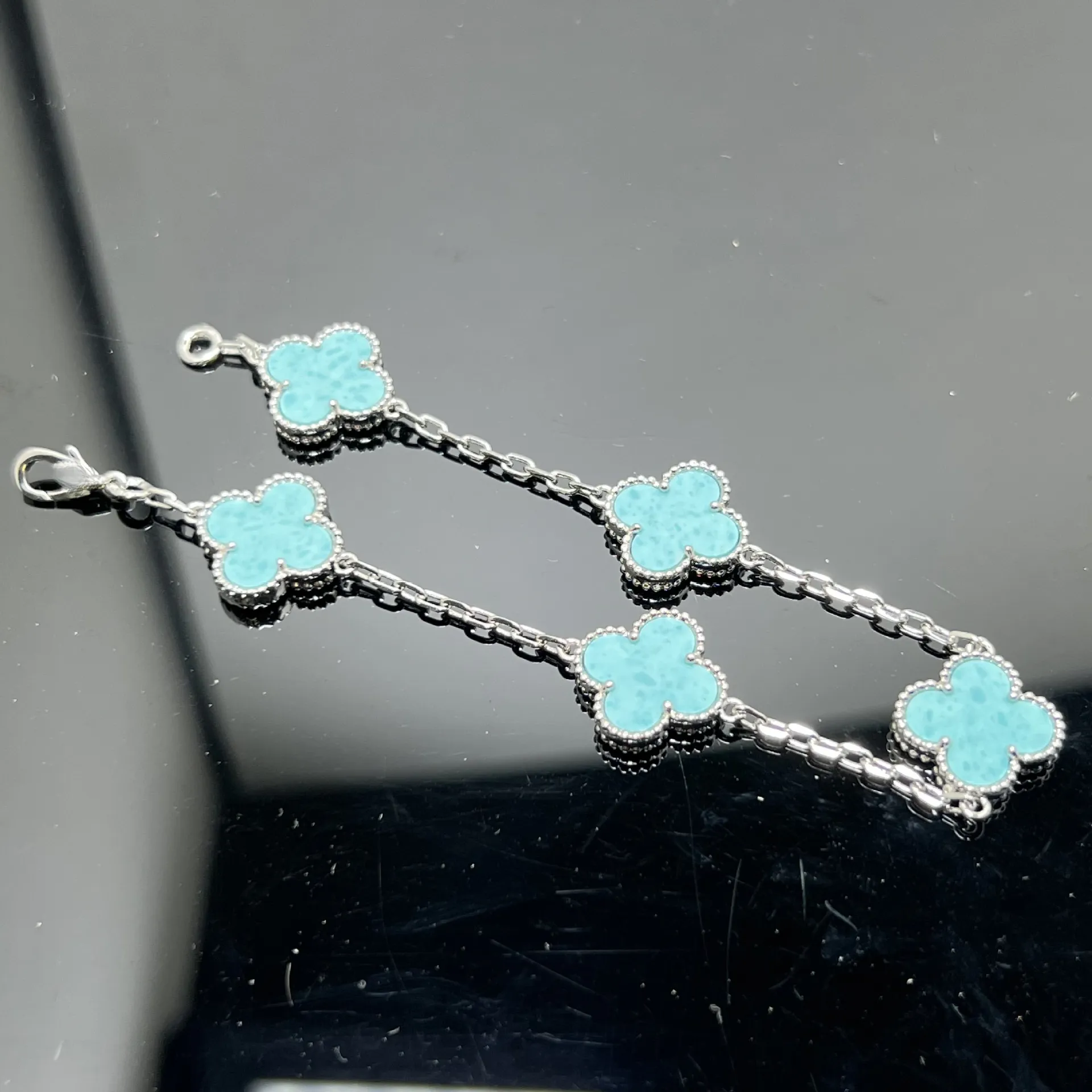 EMKOSUNG 18K Gold Plated Unique Four Leaf Clover Silver Bracelets for Women , Fashion Bracelets Gifts for Women with Exquisite Jewelry Box ( Turquoise—Silver Chain) Learn More..