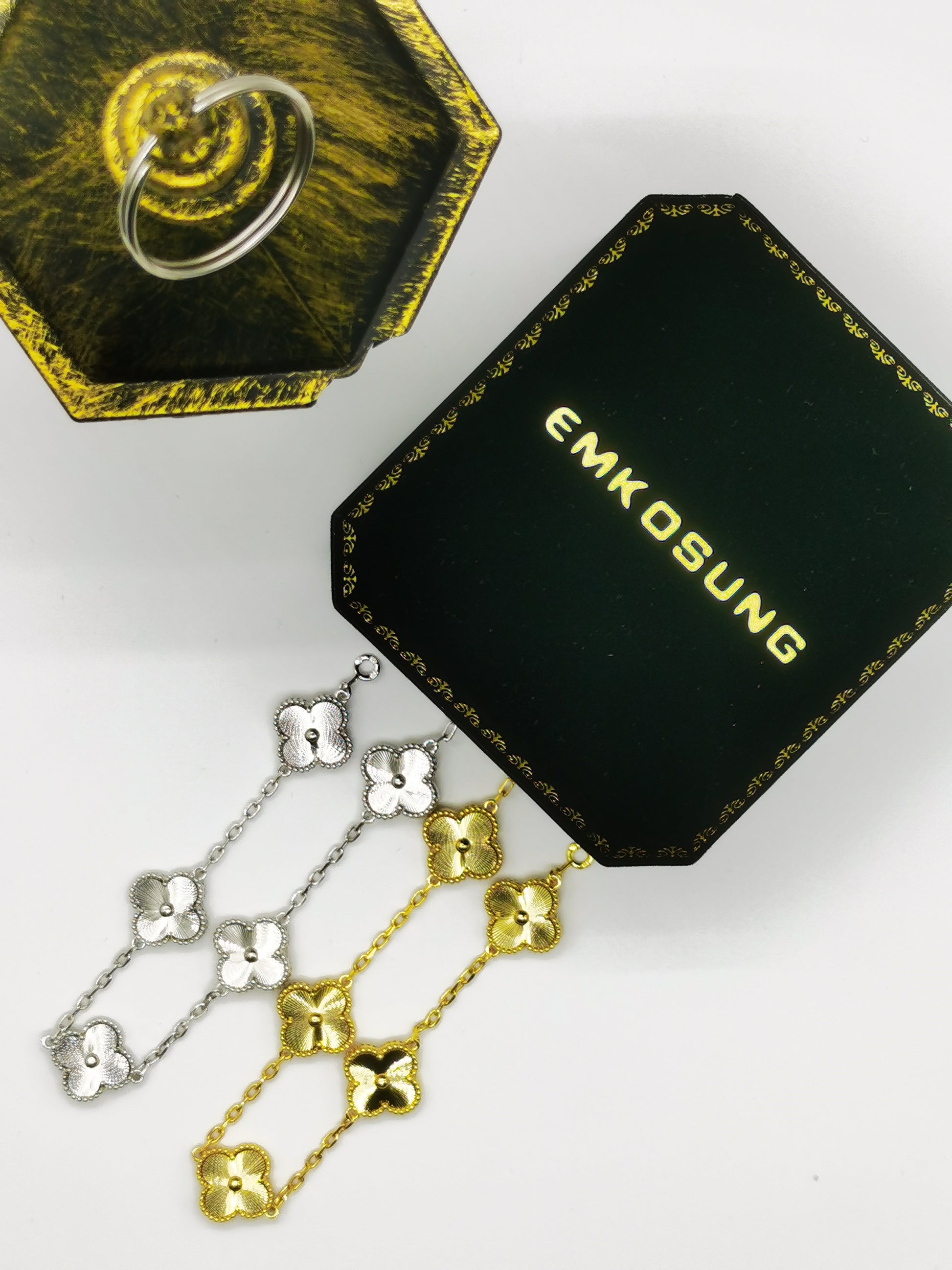 EMKOSUNG 18K Gold Plated Four Leaf Clover Bracelets for Women