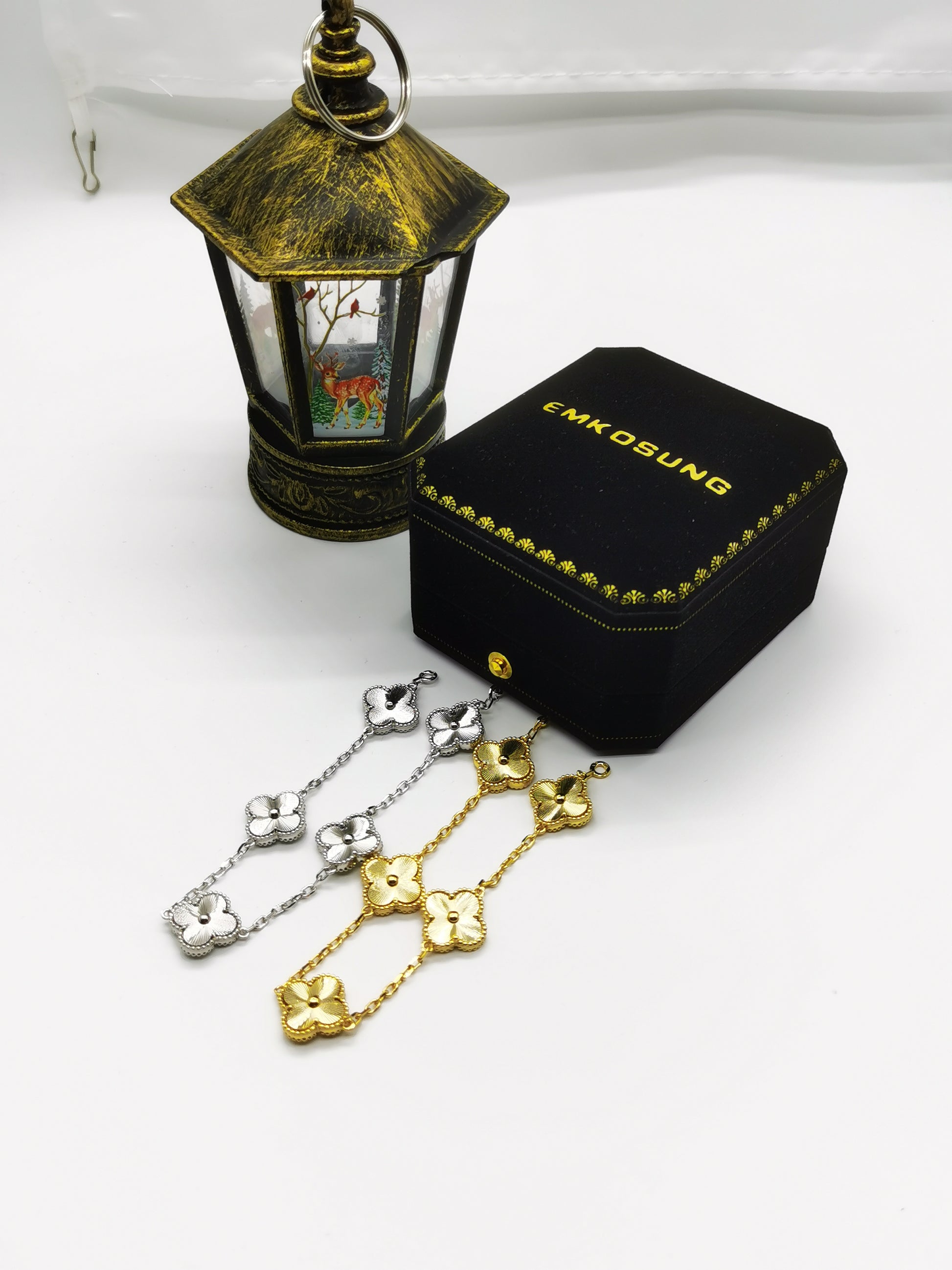 EMKOSUNG 18K Gold Plated Unique Four Leaf Clover Silver Bracelets for Women , Fashion Bracelets Gifts for Women with Exquisite Jewelry Box ( Gold Full Diamond) Learn More..