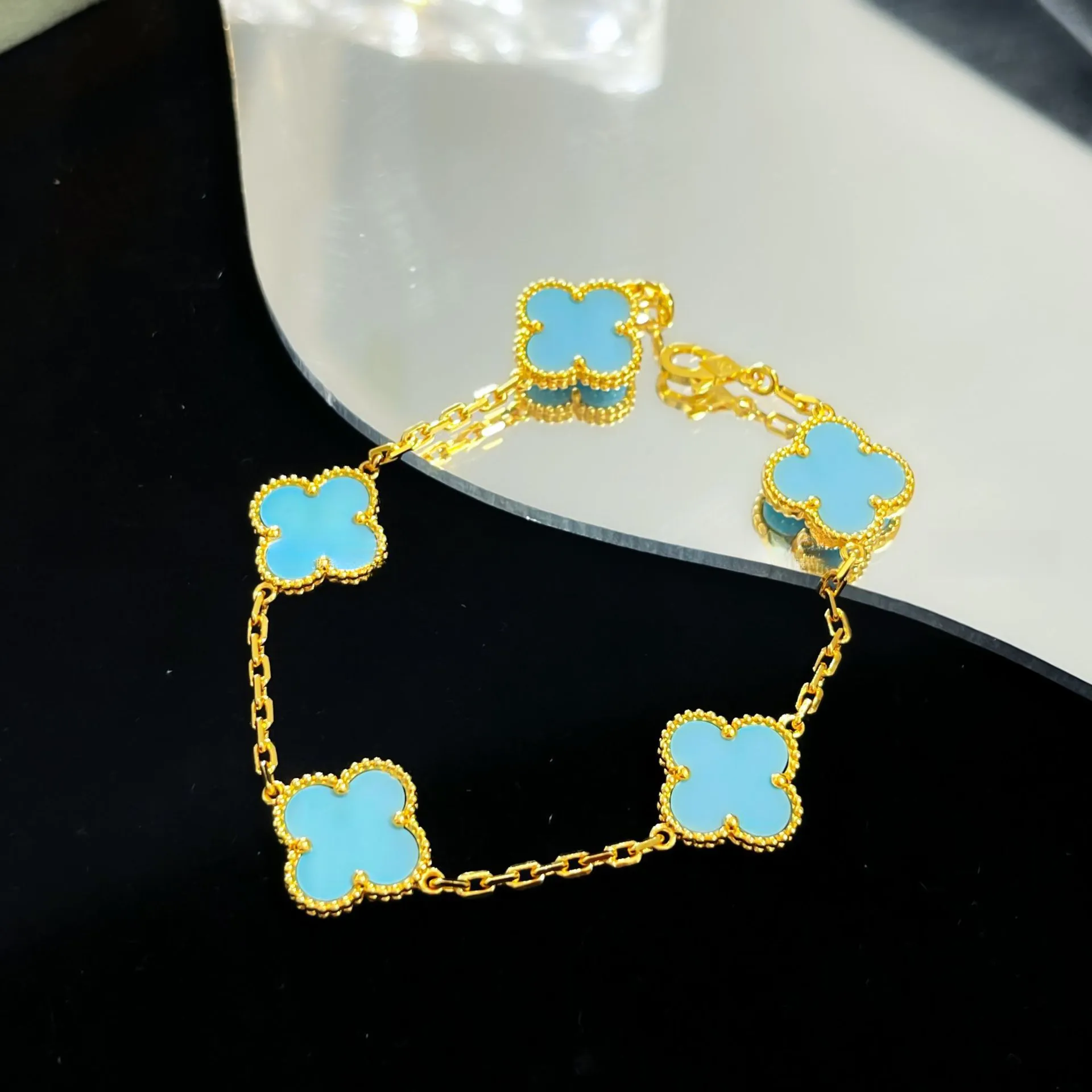 EMKOSUNG 18K Gold Plated Unique Four Leaf Clover Silver Bracelets for Women , Fashion Bracelets Gifts for Women with Exquisite Jewelry Box ( Turquoise—Gold Chain) Learn More..