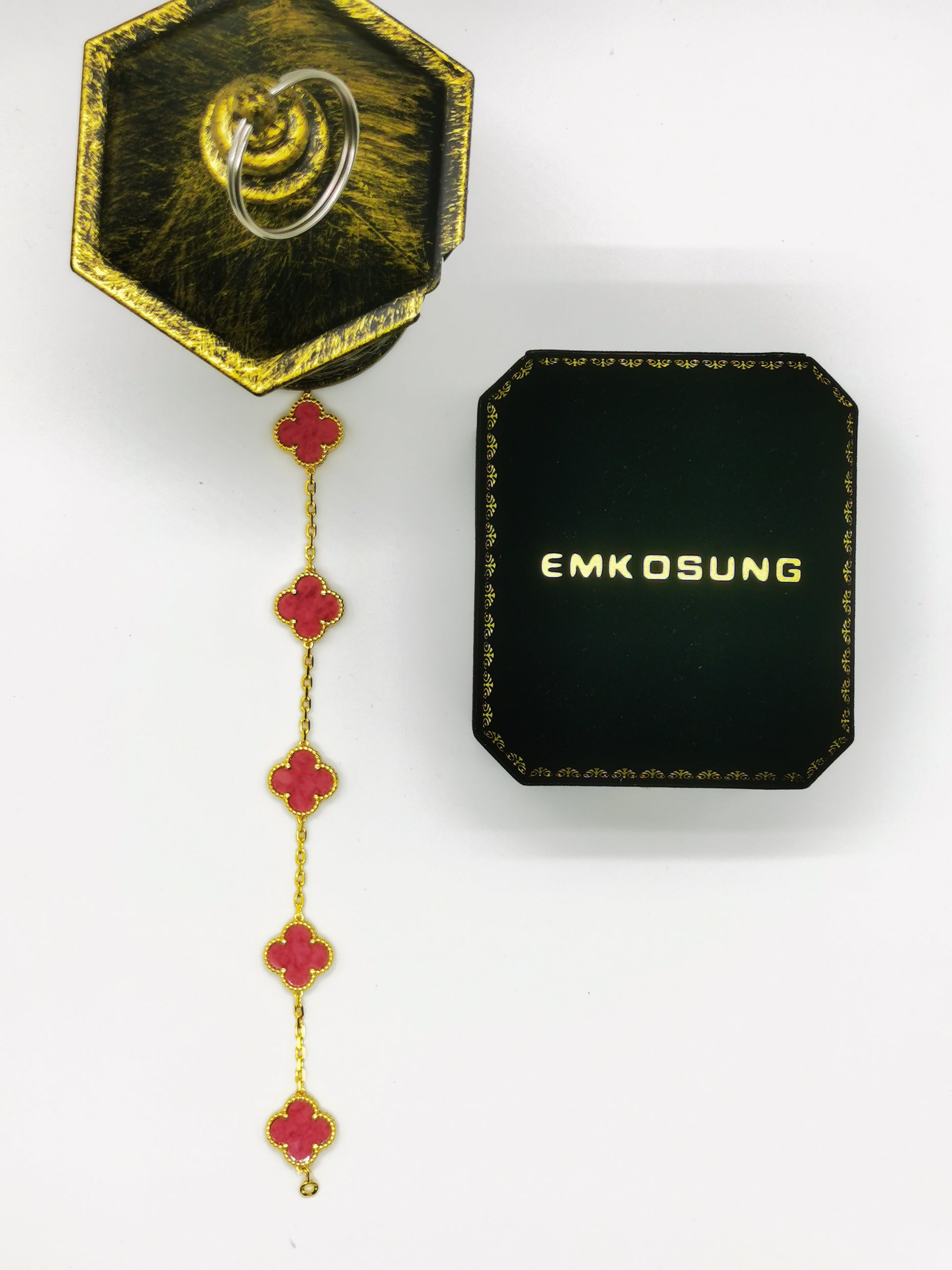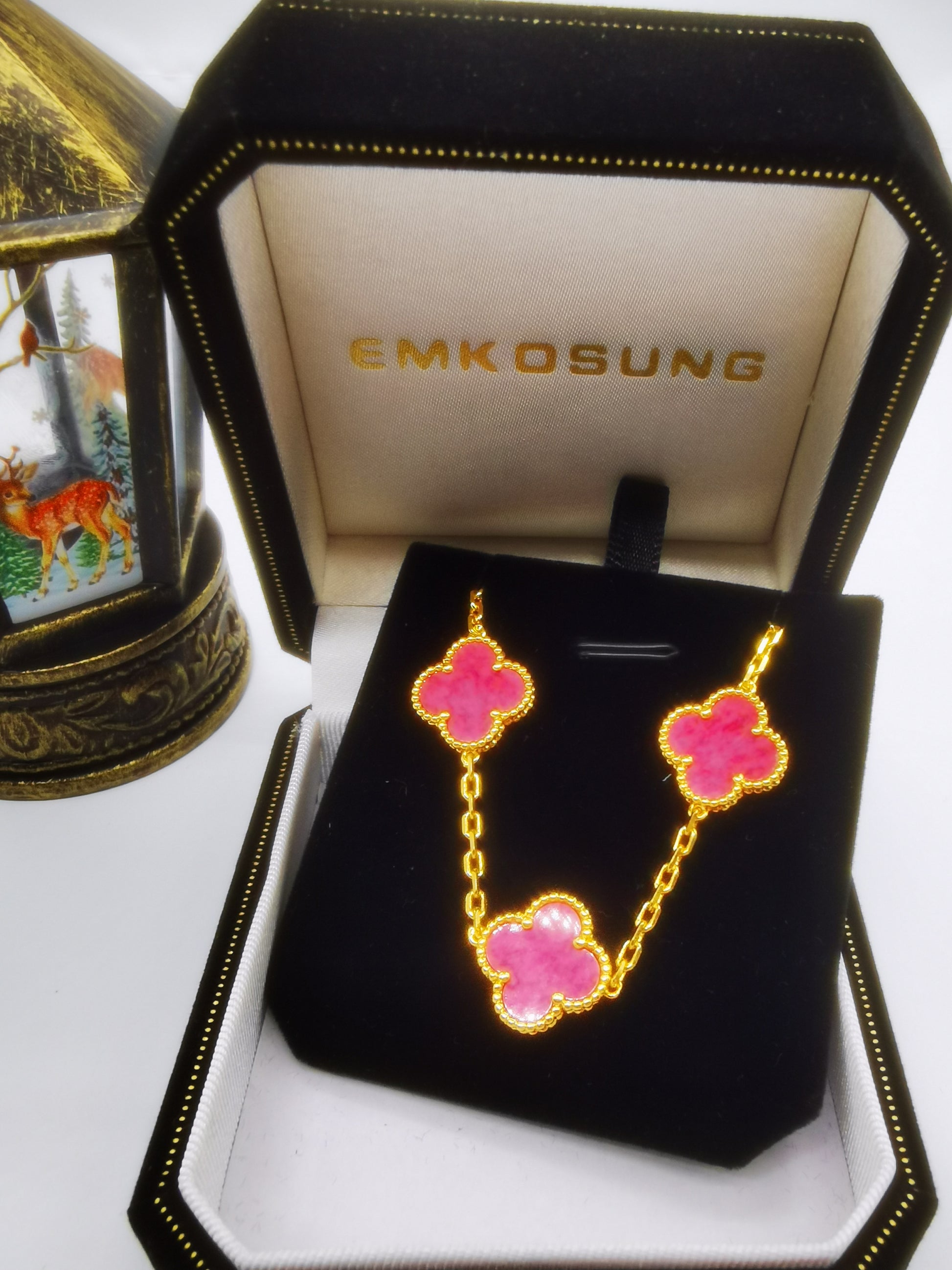 EMKOSUNG 18K Gold Plated Unique Four Leaf Clover Silver Bracelets for Women , Fashion Bracelets Gifts for Women with Exquisite Jewelry Box ( Rose Pink—Gold Chain) Learn More..