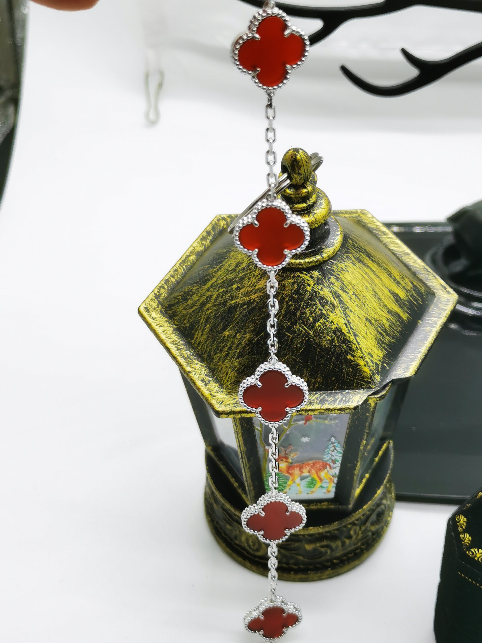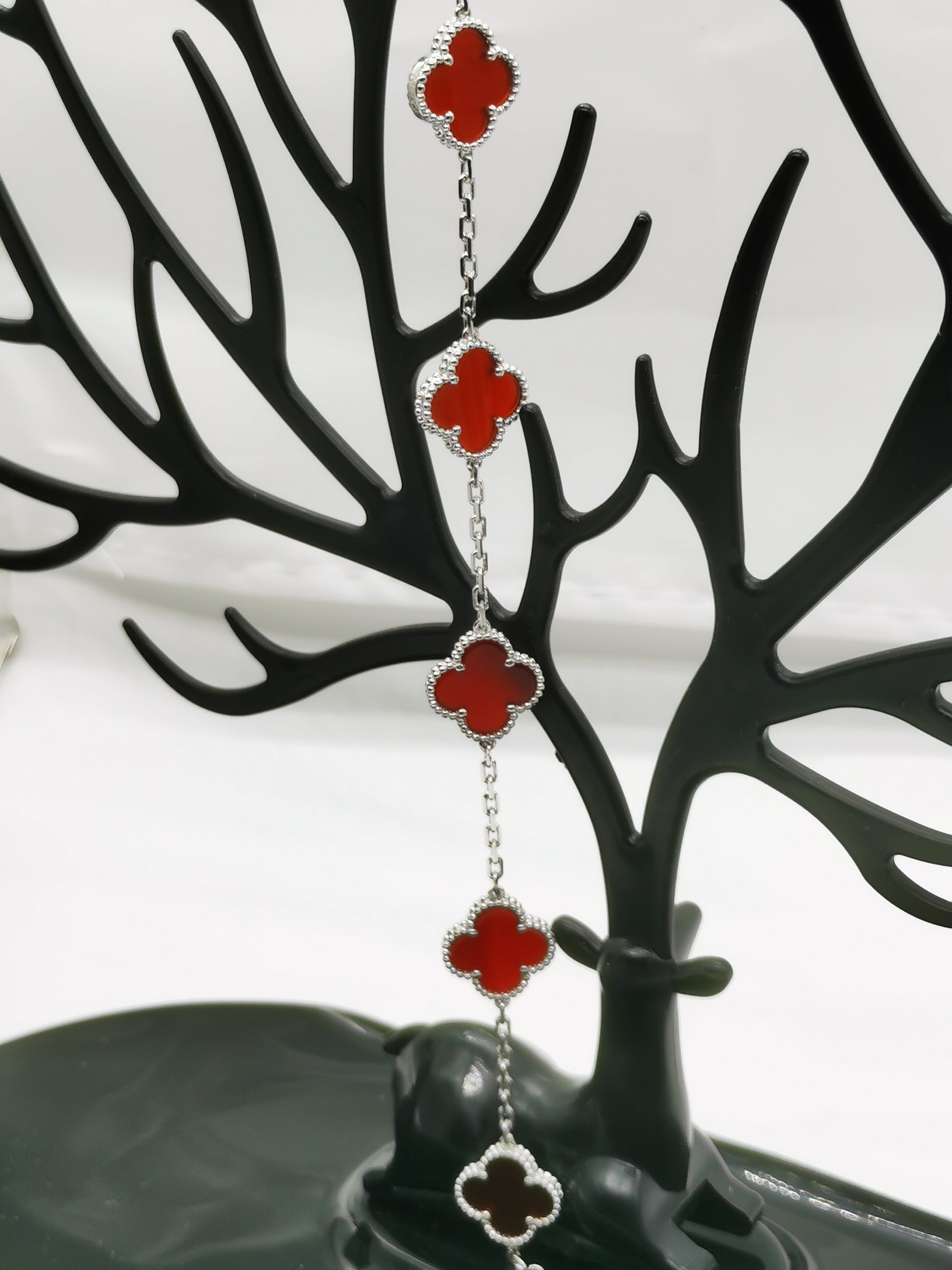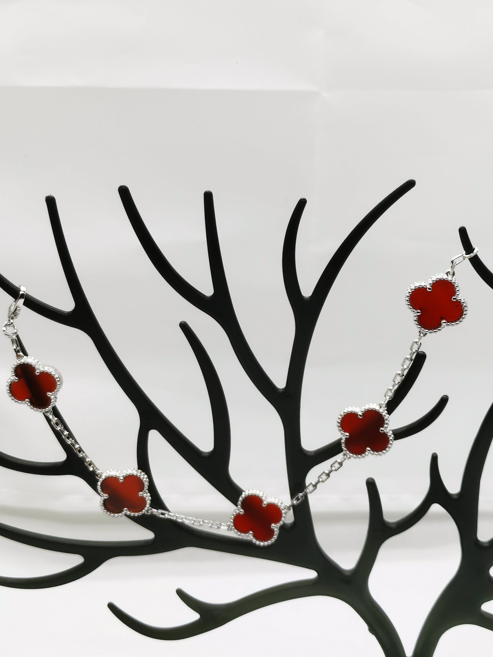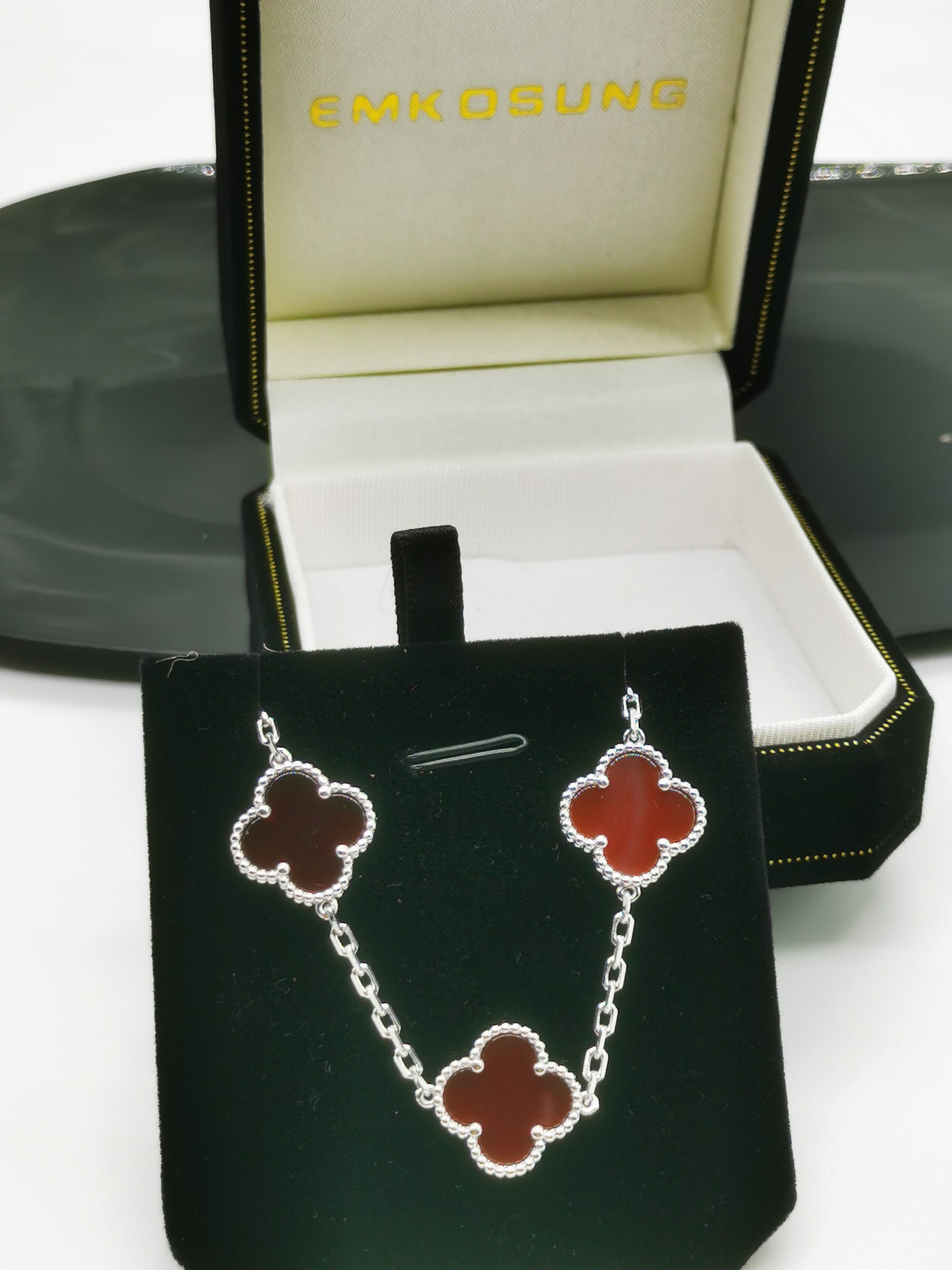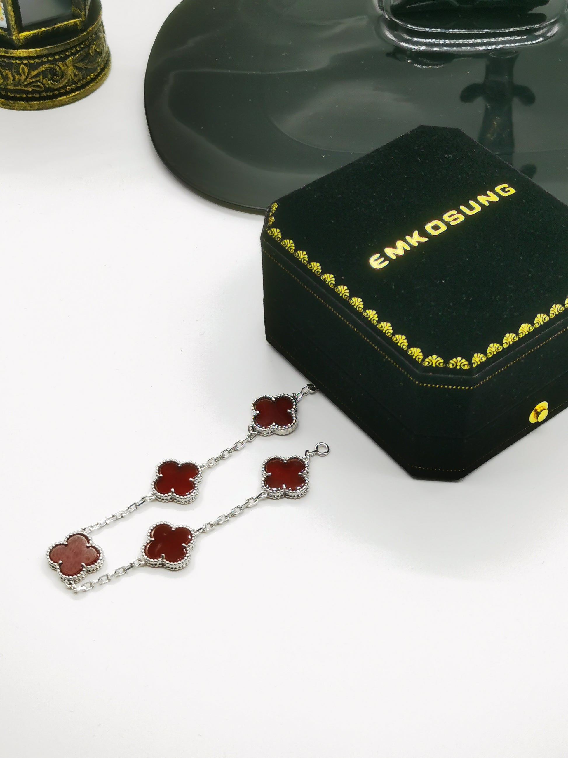 EMKOSUNG 18K Gold Plated Unique Four Leaf Clover Silver Bracelets for Women , Fashion Bracelets Gifts for Women with Exquisite Jewelry Box ( Red—Silver Chain) Learn More..