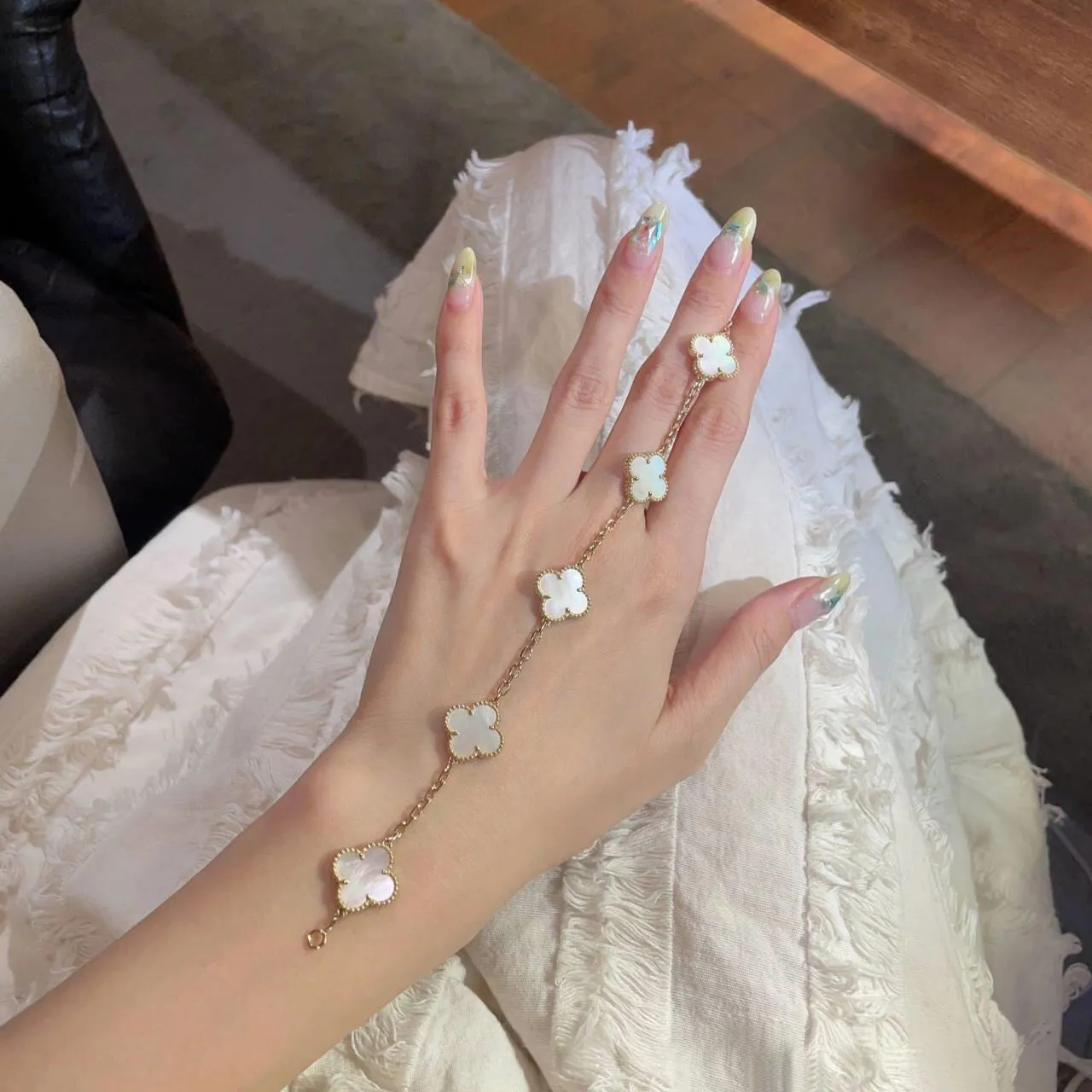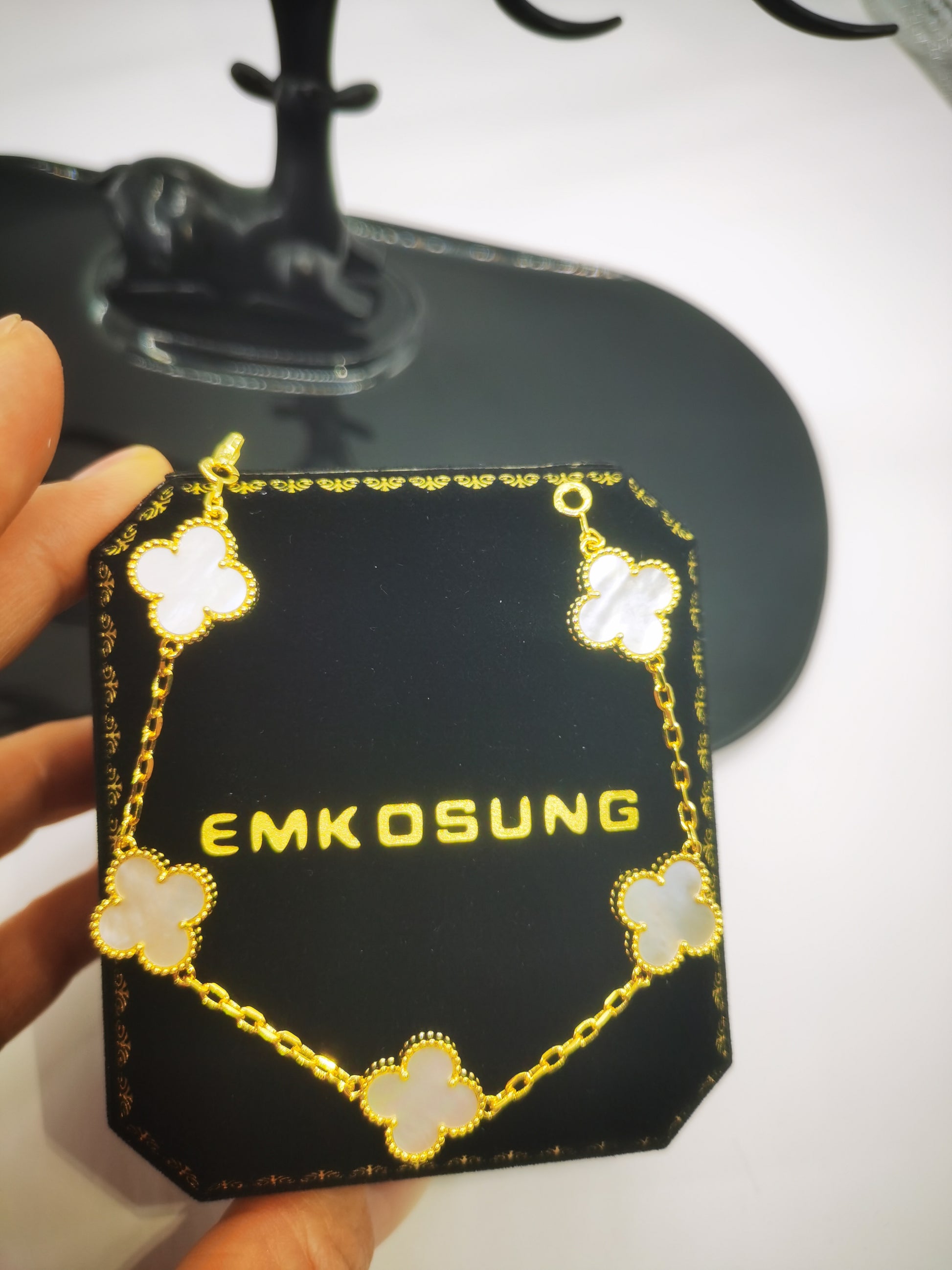 EMKOSUNG 18K Gold Plated Unique Four Leaf Clover Silver Bracelets for Women , Fashion Bracelets Gifts for Women with Exquisite Jewelry Box ( White—Gold Chain) Learn More..