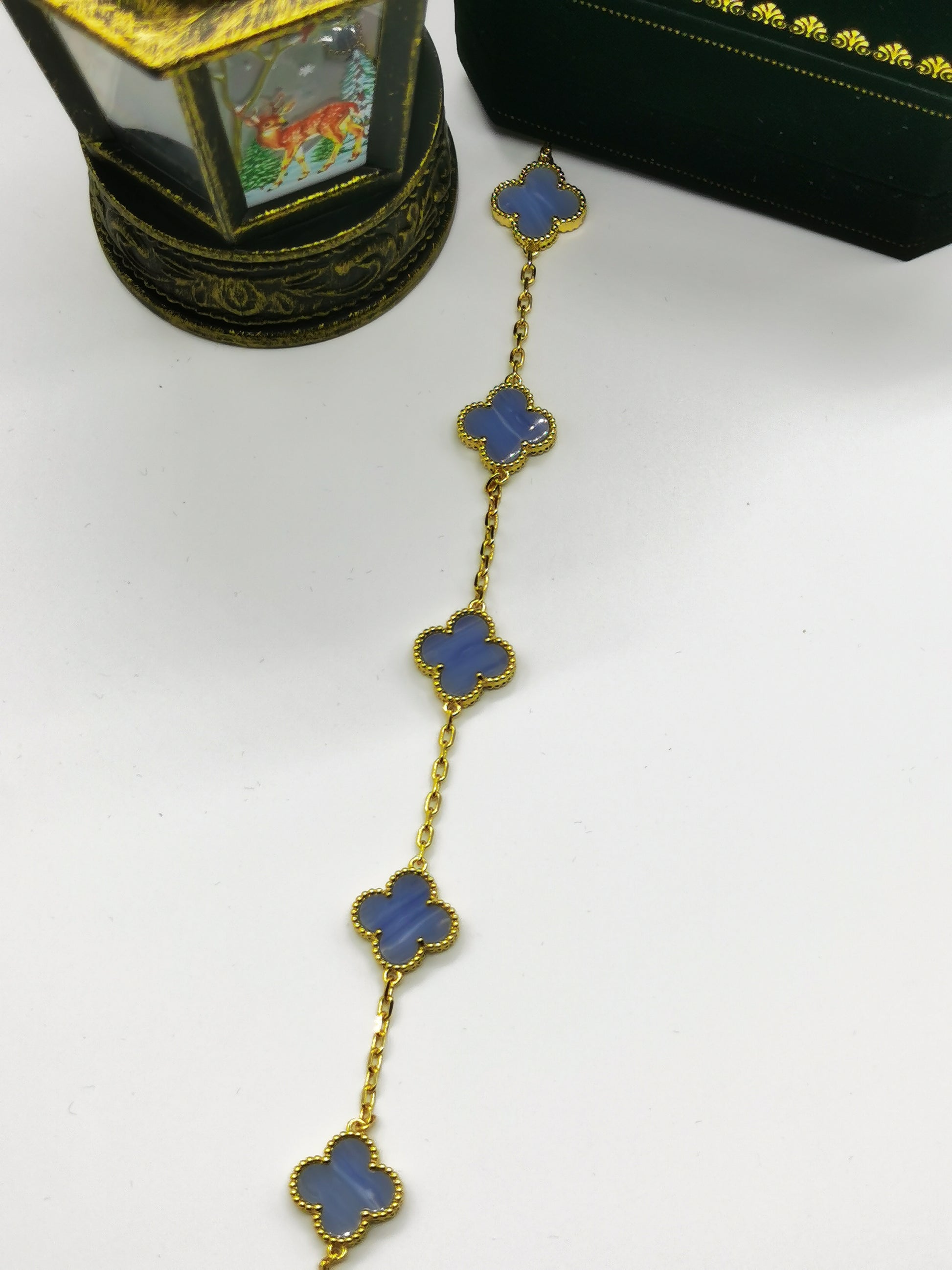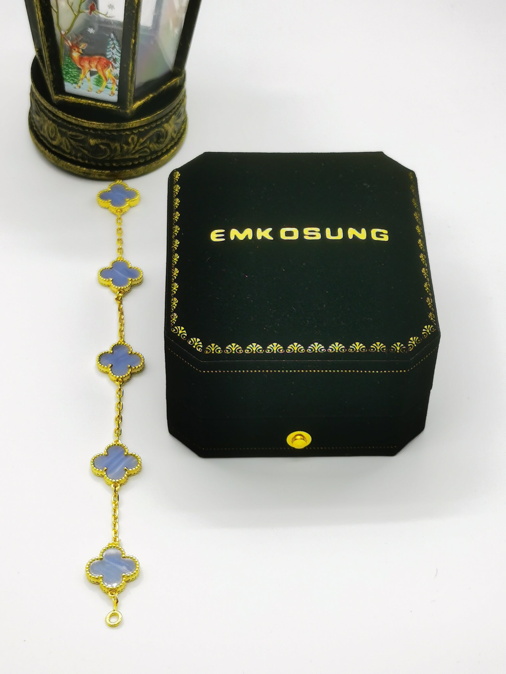 EMKOSUNG 18K Gold Plated Unique Four Leaf Clover Silver Bracelets for Women , Fashion Bracelets Gifts for Women with Exquisite Jewelry Box ( Purple—Gold Chain) Learn More..