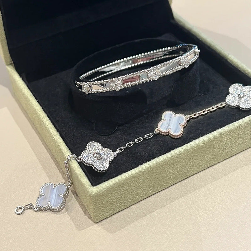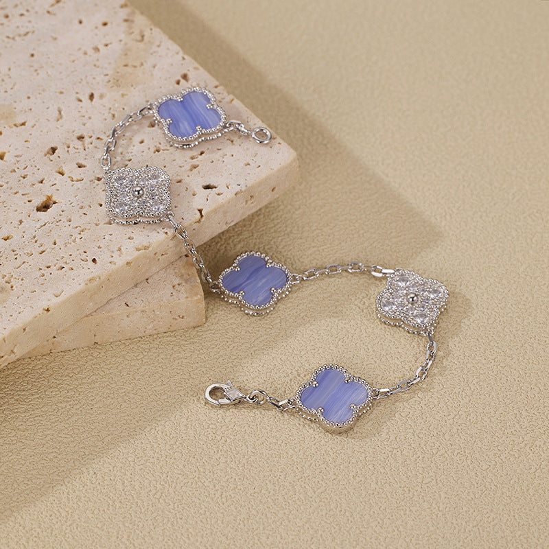EMKOSUNG 18K Gold Plated Unique Four Leaf Clover Silver Bracelets for Women , Fashion Bracelets Gifts for Women with Exquisite Jewelry Box ( Purple+Diamond-Silver Chain) Learn More..