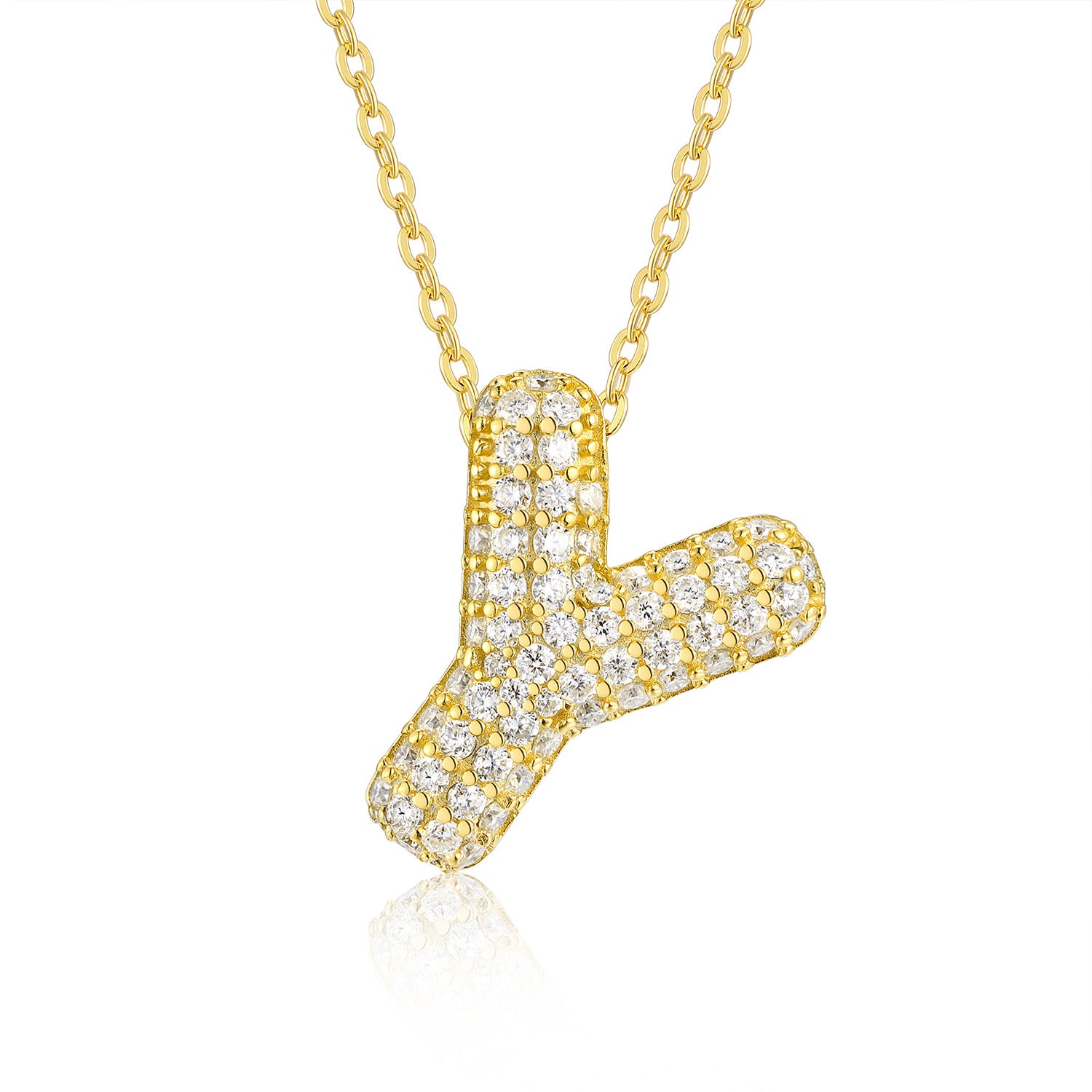EMKOSUNG 18K Gold Plated Light Luxury Moissanite Initial Letter Necklaces for Women