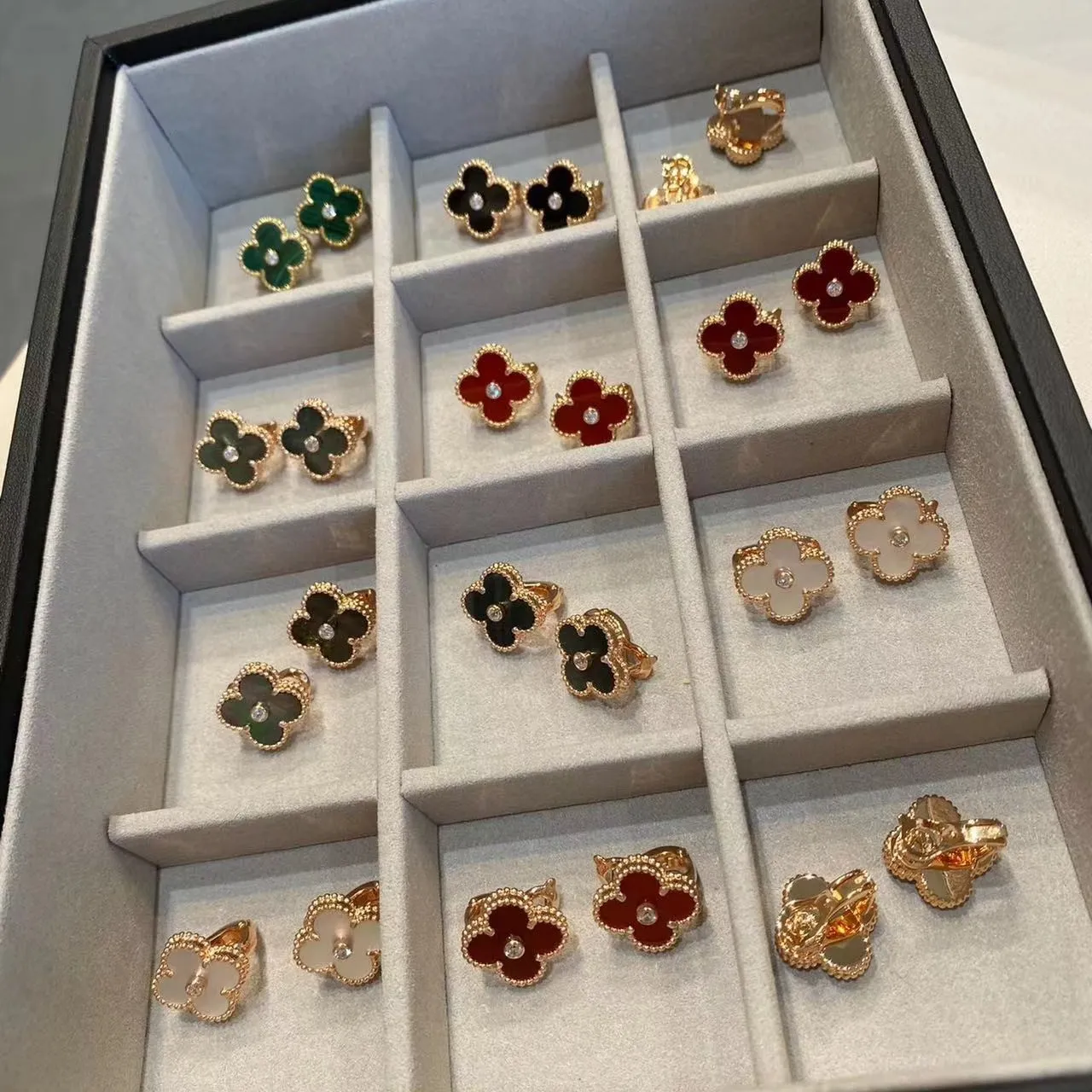 EMKOSUNG 18K Gold Plated Single Flowers Four Leaf Clover Earrings for Women
