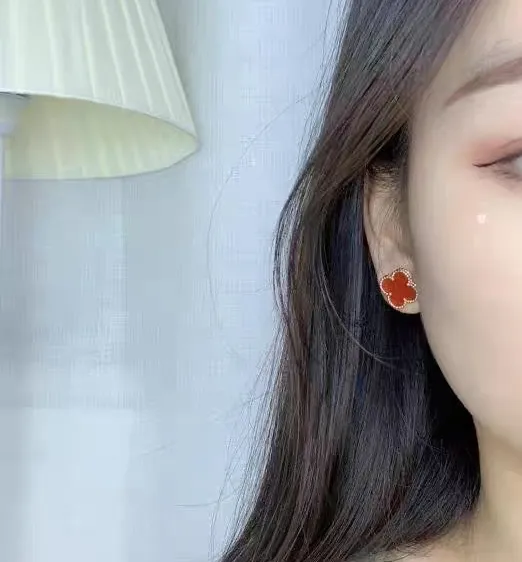 EMKOSUNG 18K Gold Plated Unique Single Flower Four Leaf Clover Silver Earrings for Women , Fashion Earrings with Exquisite Jewelry Box ( Red) Learn More..