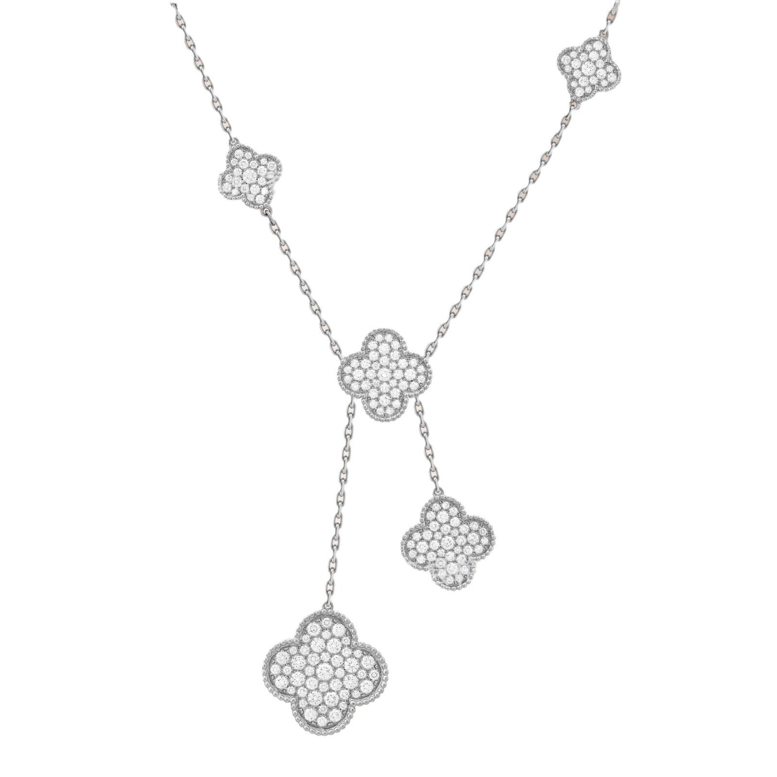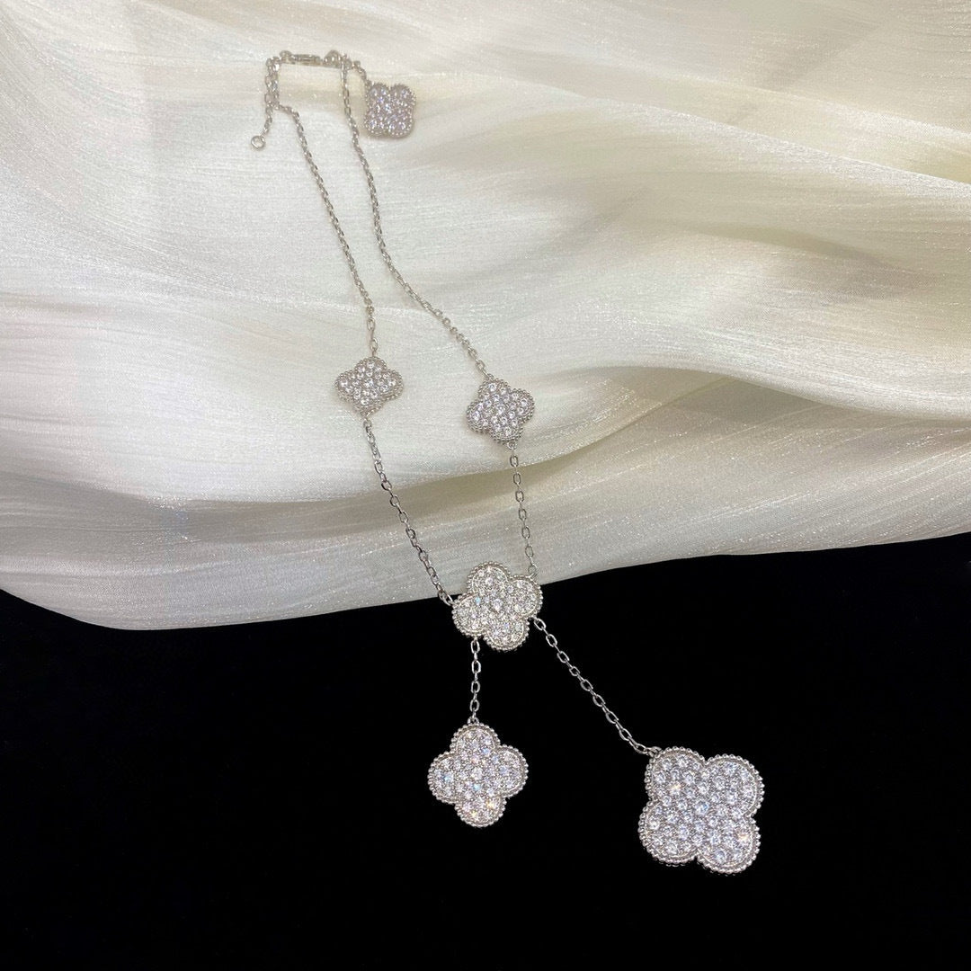 EMKOSUNG 18K Gold Plated Unique Four Leaf Clover Silver Necklaces for Women , Fashion Necklaces Gifts for Women with Exquisite Jewelry Box (Silver Full Diamond)